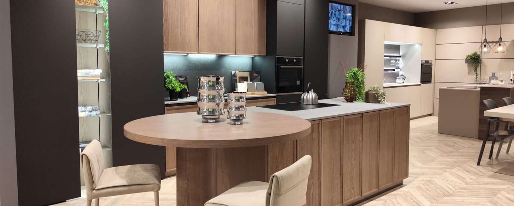 Se cerchi una cucina contemporanea ti invitiamo a scoprire la cucina Poetica. È una collezione dal carattere accogliente, con un’estetica curata nei dettagli e una palette materica che mixa vetro, gres porcellanato, metallo e diverse essenze di legno per combinazioni ricercate. In showroom puoi valutare soluzioni pratiche come piano colazione, armadio ripostiglio attrezzato e boiserie Vertical System per organizzare utensili e oggetti. La versatilità si estende anche al living coordinato, con moduli per madie e pareti attrezzate che dialogano con la cucina mantenendo un’identità elegante, autenticamente made in Italy.